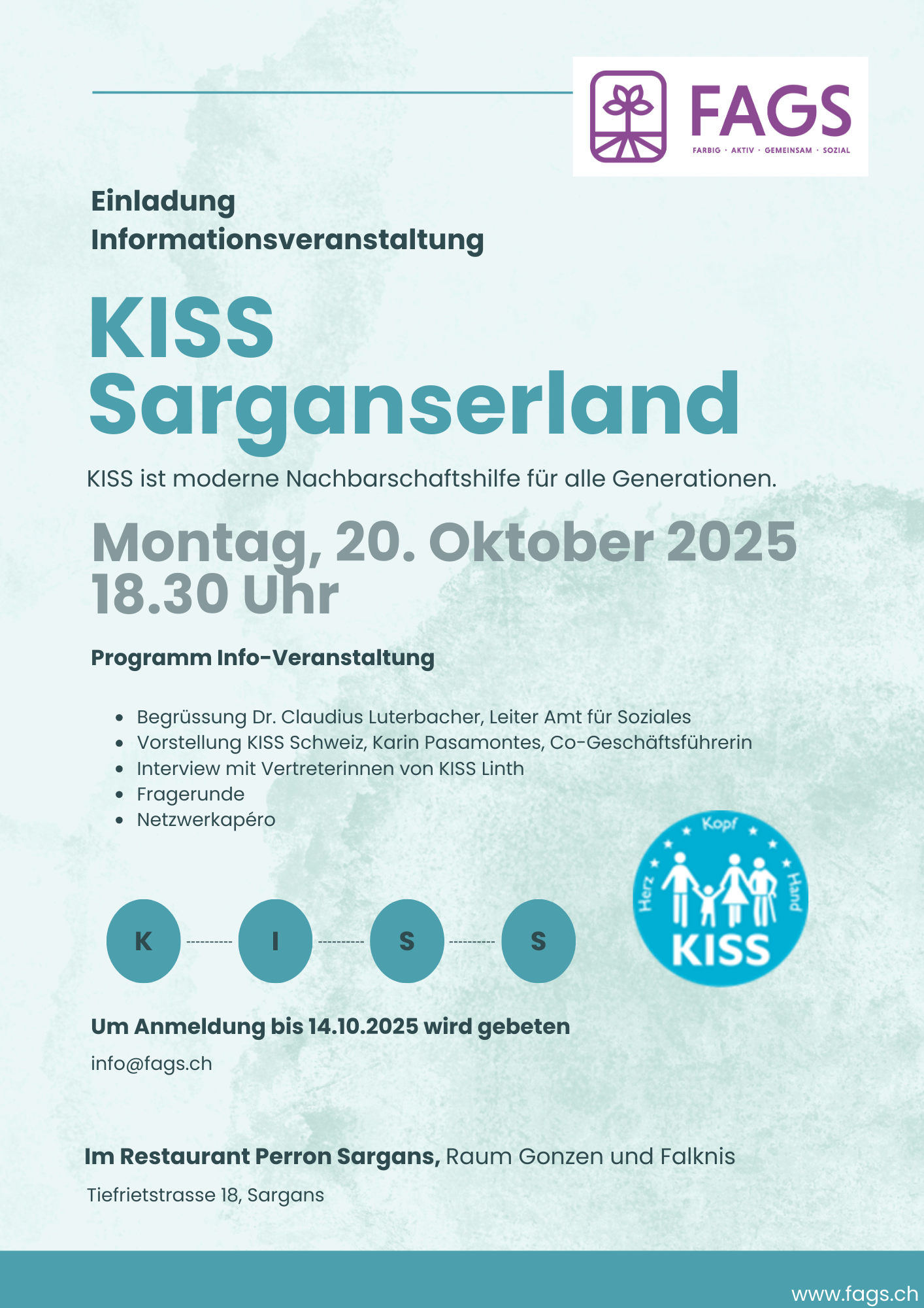 Informationsanlass KISS Montag, 20.10.2025 18.30 Uhr – 19.30 Uhr mit anschliessend Netzwerk Apéro